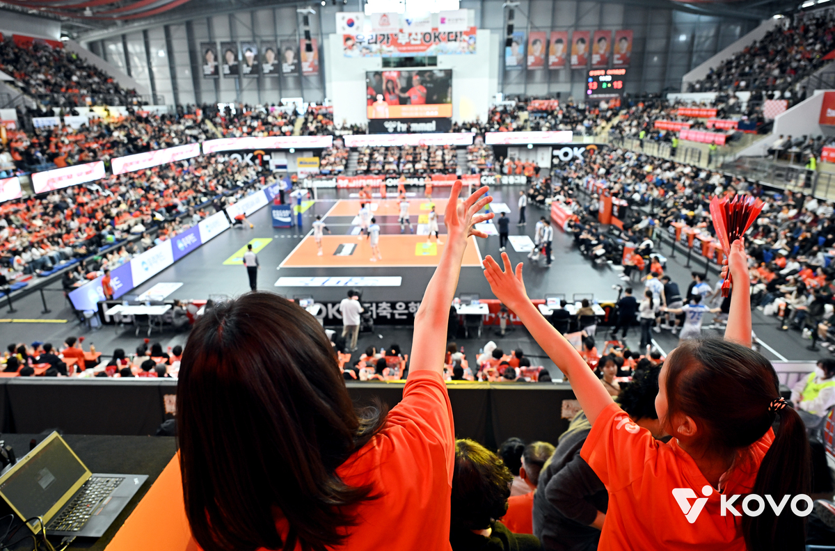관중 증가에 결정적인 영향을 미친 것은 OK저축은행의 연고지 이전이었다. 지난 시즌 종료 후 기존 연고지였던 경기도 안산시를 떠나 부산에 둥지를 틀었다. 대박이 터졌다. 올 시즌 12번의 홈 경기에 총 3만9294명을 끌어모았다. 평균 관중 3275명으로 남자부 유일한 3000명대 관중을 기록하고 있다. 홈 구장인 4067석 규모의 부산강서실내체육관은 올 시즌 4차례나 매진됐다. 입석표까지 팔면서 지난 11월30일 우리카드전에는 시즌 최다인 4302명의 관중이 경기장을 찾았다.