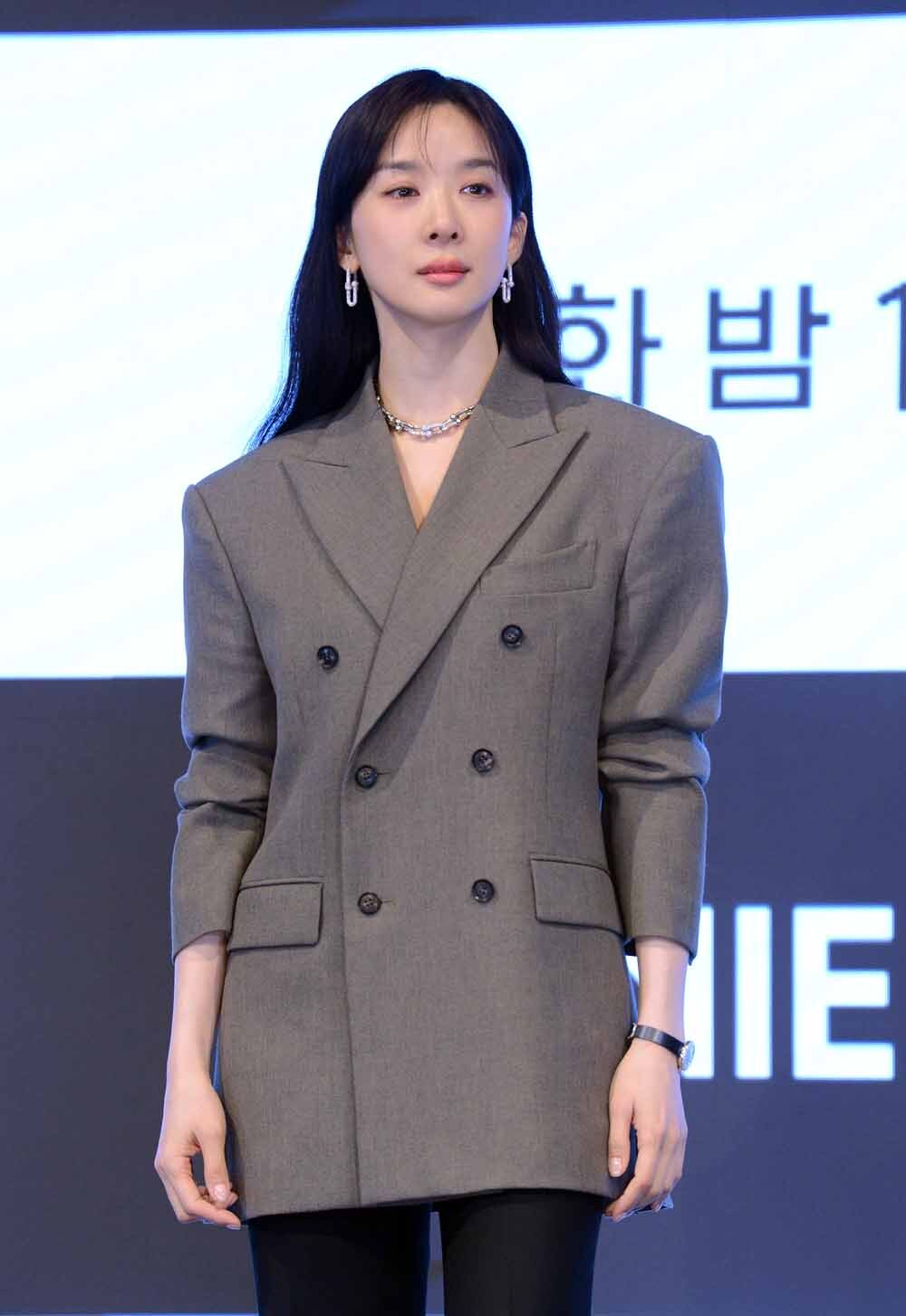배우 이청아가 26일 서울 구로구 디큐브시티에서 열린 ENA 월화드라마 '아너 : 그녀들의 법정(감독 박건호)' 제작발표회에서 포즈를 취하고 있다.