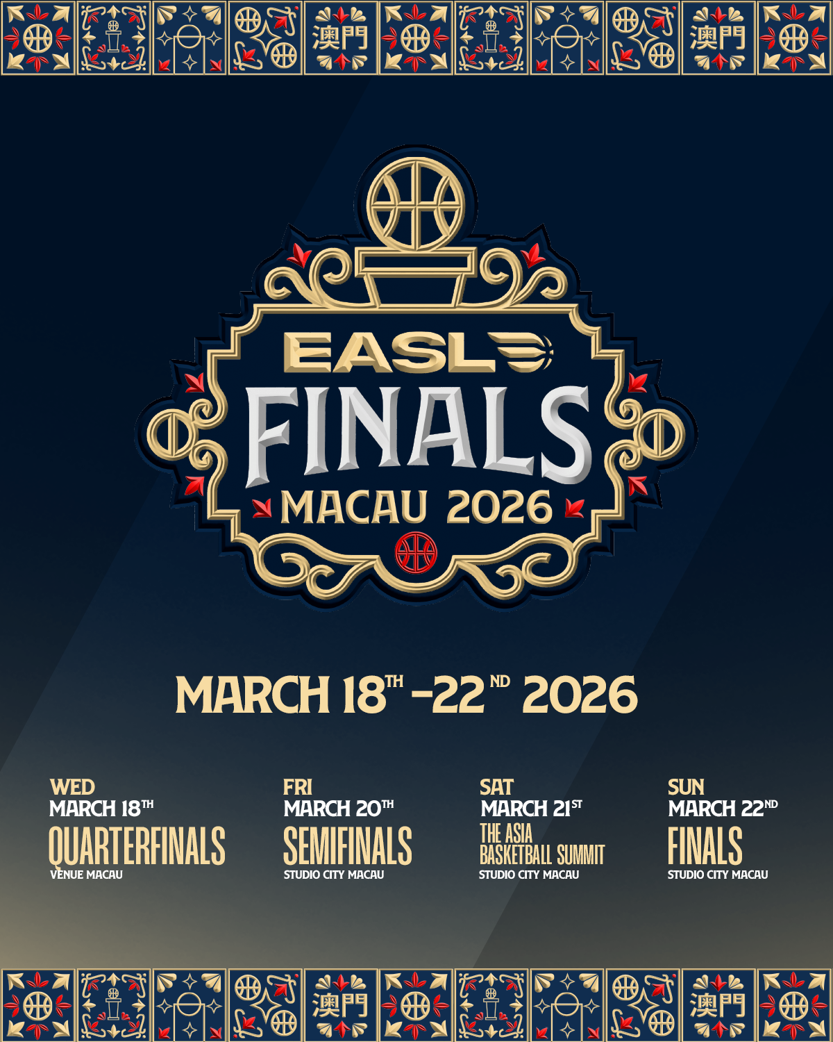 아울러 EASL은 3월 21일 마카오 스튜디오 시티에서 제2회 ‘더 아시아 바스켓볼 서밋(The Asia Basketball Summit)’을 개최한다. 이번 서밋에는 아시아 전역의 농구 산업을 이끄는 주요 인사들이 한자리에 모여, 아시아 농구의 미래를 만들어갈 방향과 핵심 이슈를 주제로 고위급 논의를 진행할 예정이다. 세부 내용은 추후 공개된다.