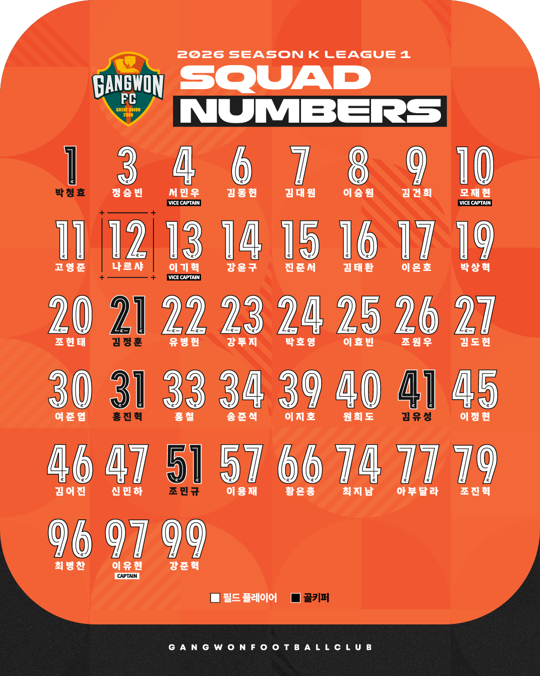 프로축구 K리그1 강원FC가 2026시즌 등번호를 26일 공개했다.