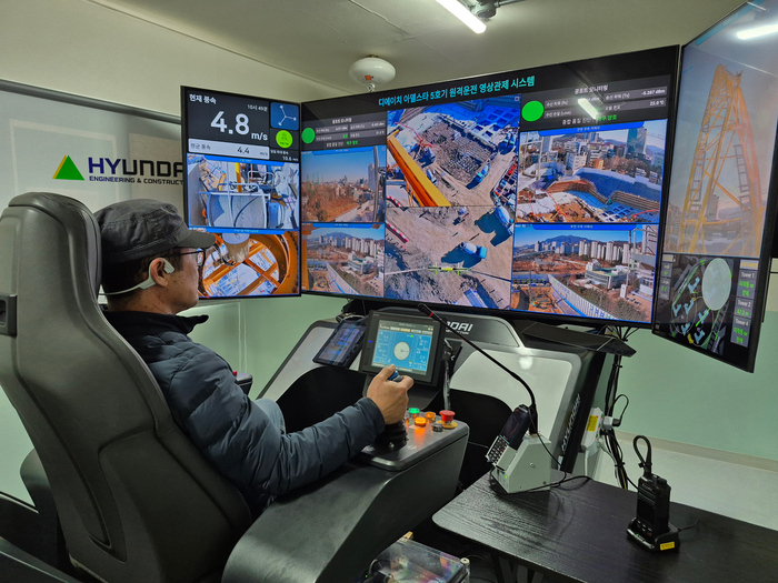 현대건설이 건설 현장의 고위험 작업을 대체할 원격제어 타워크레인을 국내 최초로 도입했다.