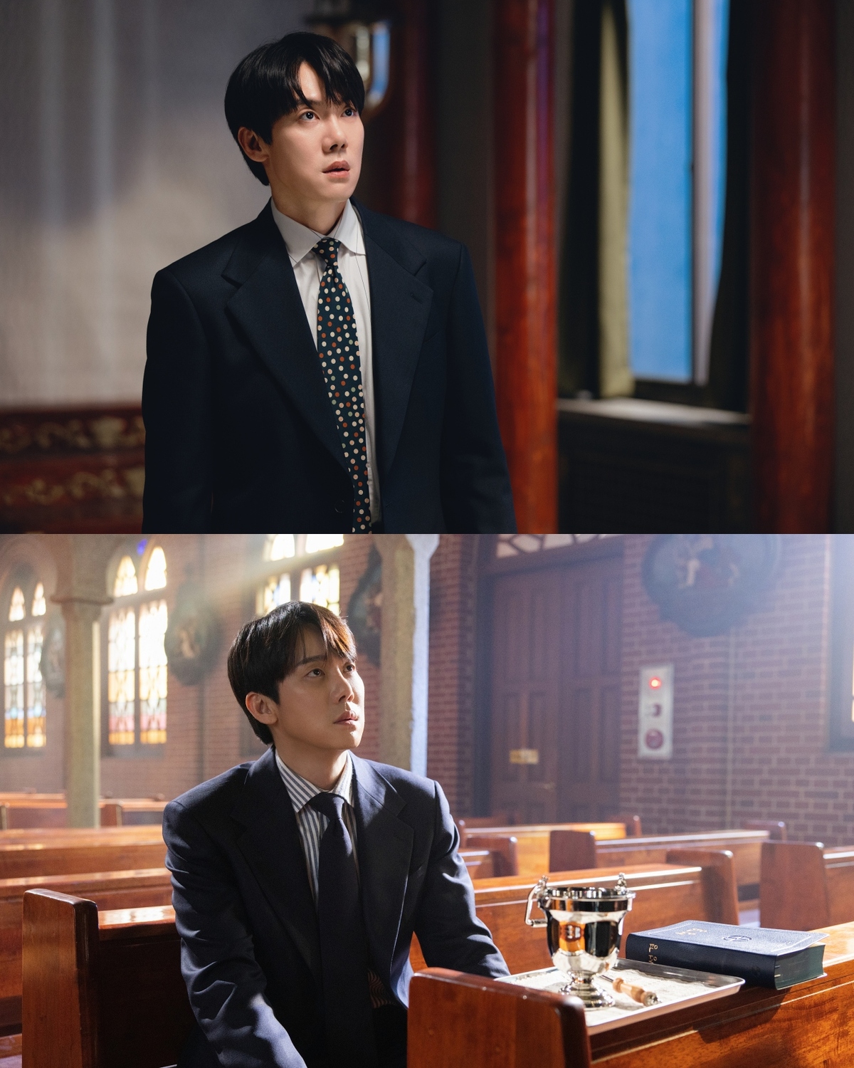 오늘(5일) 최초 공개된 이미지는 유연석이 데뷔 이래 처음으로 선보이는 본격 코믹 연기와 더불어, 각기 다른 사연에 빙의하는 1인 N역급 ‘신들린 연기 차력쇼’를 보여줄 것으로 기대되는 캐릭터 ‘신이랑’의 신들리기 전과 후를 보여준다. 먼저 잘 빠진 슈트 차림의 스마트한 변호사 비주얼 속에서도 유연석만이 가진 특유의 인간미가 고스란히 드러난다. 모든 사건이 시작된 ‘옥천빌딩 501호’에 발을 디딘 후 원하지 않아도 보이는 귀신 탓에 성당을 찾아가 기도하는 초췌한 모습도 눈길을 끈다.