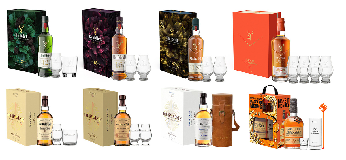 이번 기획 세트는 글렌피딕 4종, 발베니 3종, 몽키숄더 1종 등 총 8종으로 구성했으며 위스키 입문자부터 애호가까지 즐길 수 있는 폭넓은 라인업이어서 관심을 모은다. 주요 제품에는 싱글몰트 위스키의 향을 온전히 즐길 수 있도록 독일산 정품 ‘글렌캐런(Glencairn)’ 테이스팅 잔과 전용 위스키 가방 등도 포함해 소장 가치를 높였다.