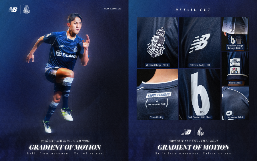 프로축구 K리그2 서울 이랜드 FC가 뉴발란스와 함께한 2026시즌 유니폼 ‘GRADIENT OF MOTION(움직임의 흐름)’을 공개했다.