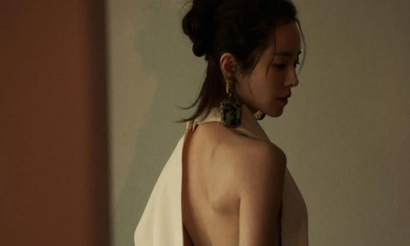 특히 과감하게 등을 드러낸 홀터넥 스타일의 의상과 실버 프릴 디테일이 돋보이는 드레스를 완벽하게 소화하며 우아하면서도 강렬한 존재감을 드러냈다. 젖은 듯 연출된 헤어 스타일링과 깊은 눈빛은 몽환적인 분위기를 더하며 화보의 완성도를 높였다.