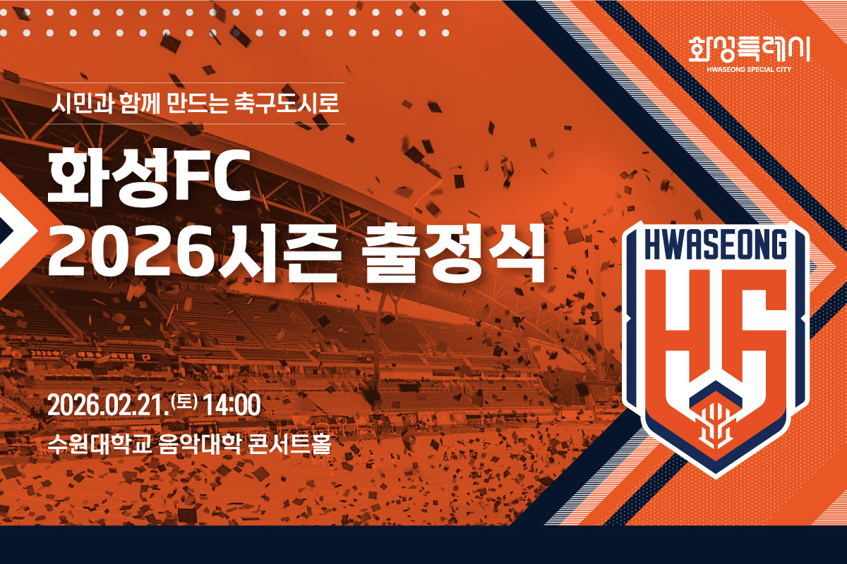 프로축구 화성FC가 오는 21일 오후 2시 수원대학교 음악대학 콘서트홀에서 팬들과 함께 새로운 시즌의 각오를 다지는 ‘2026 화성FC 출정식’을 개최한다.
