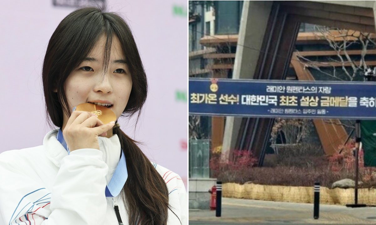 2026 밀라노·코르티나담페초 동계올림픽에서 한국 설상 종목 역사상 첫 금메달을 따낸 최가온을 둘러싸고 온라인에서 또 다른 관심이 이어지고 있다. 뉴시스에 따르면 최근 온라인 커뮤니티에는 서울 서초구 반포동의 래미안 원펜타스 단지 입구에 걸린 현수막 사진이 공유됐다. 현수막에는 입주민 명의로 "래미안 원펜타스의 자랑, 최가온 선수! 대한민국 최초 설상 금메달을 축하합니다"라는 문구가 적혀 있었다.