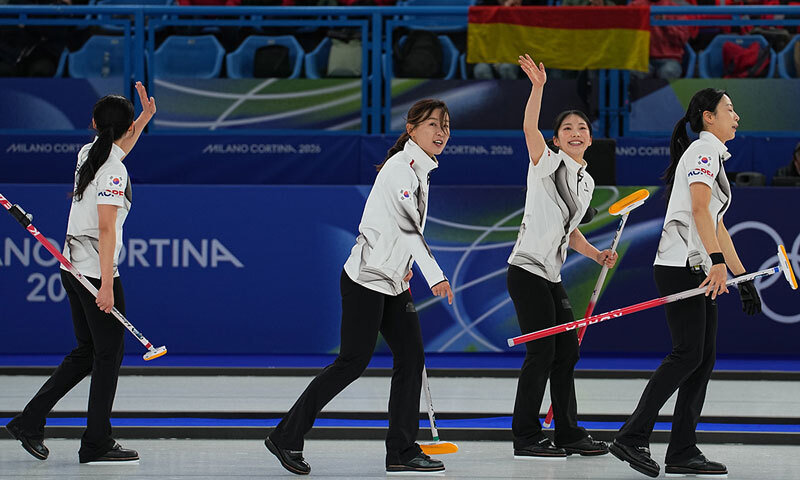 한국 여자 컬링 대표팀 ‘5G’ 경기도청은 18일 이탈리아 코르티나담페초의 코르티나 컬링 올림픽 스타디움서 열린 2026 밀라노·코르티나담페초 동계올림픽 여자 컬링 라운드로빈 8차전 스웨덴전에서 8-3 완승을 거뒀다.