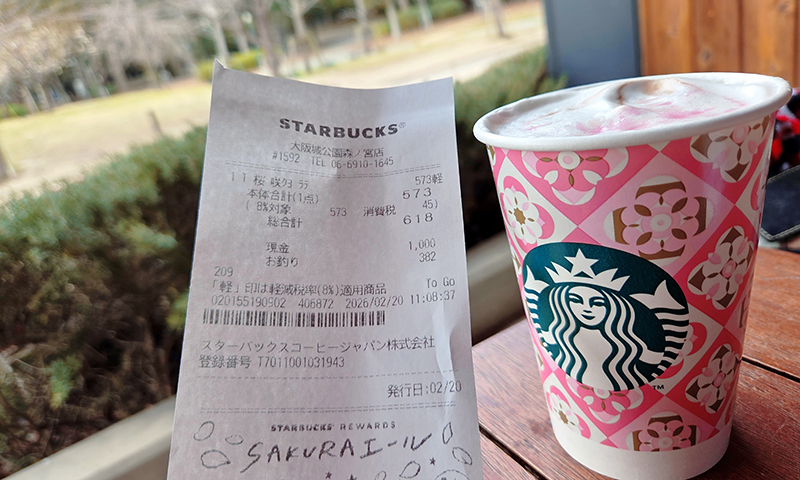 다소 쌀쌀한 2월 중순의 오사카에서 사쿠라 라테를 따듯하게 잘 마시긴 했지만, 아무리 생각해도 벚꽃 시즌을 열기엔 역시 시기가 조금 이른 게 아닌가 싶다. 그런 면에서 스타벅스코리아의 시의적절한 프로모션과 비교가 된다. 한국 사람의 의견이라 아무래도 객관적으로 보이진 않겠지만.