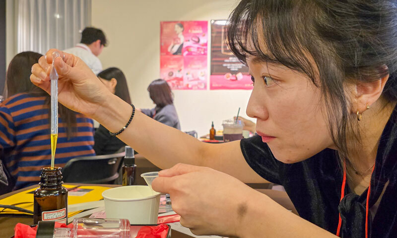가장 먼저 진행된 프로그램은 ‘조향 클래스’였다. 익스큐제 모아의 대표인 최차미 조향사가 진행했다. 참석자들은 최 대표가 준비해온 베리 노트, 초콜릿 노트를 취향껏 배합했다.