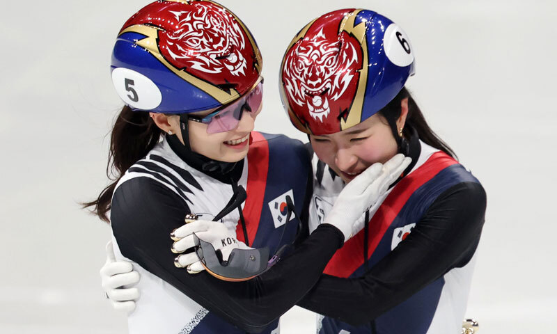 ‘우상’과 함께 메달을 경쟁하고, 시상대에 나란히 올랐다. 김길리는 “(최민정) 언니랑 꼭 포디움에 들고 싶었는데, 같이 올라가서 기분이 너무 좋다”며 “내가 어렸을 때부터 존경하던 선수랑 같이 레이스 하면서 이겼다는 게 아직도 안 믿기는 것 같다”고 전했다.