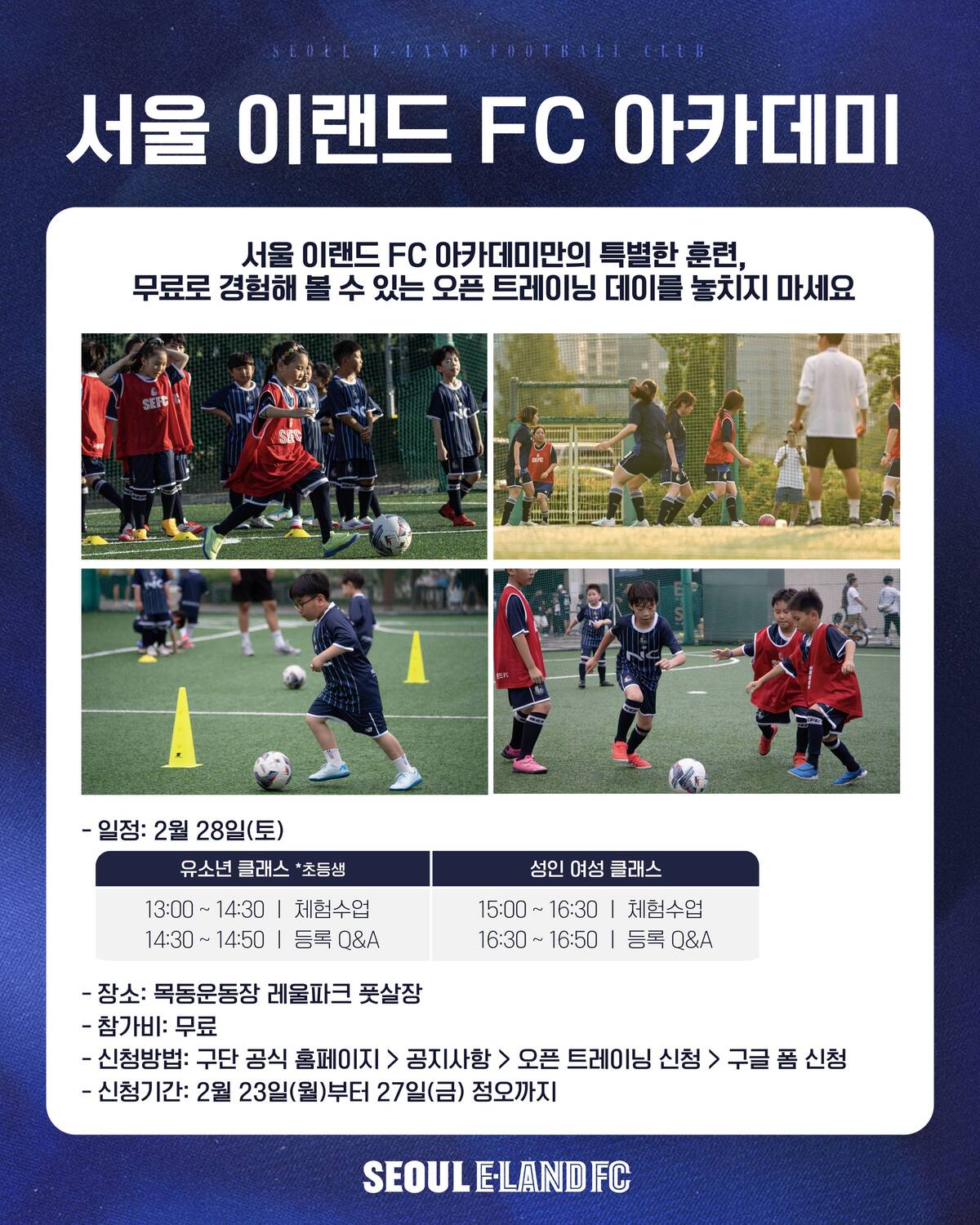 프로축구 K리그2 서울 이랜드가 구단 산하 취미형 축구 클래스 '서울 이랜드 FC 아카데미'를 새롭게 개편하고 신규 회원을 모집한다.