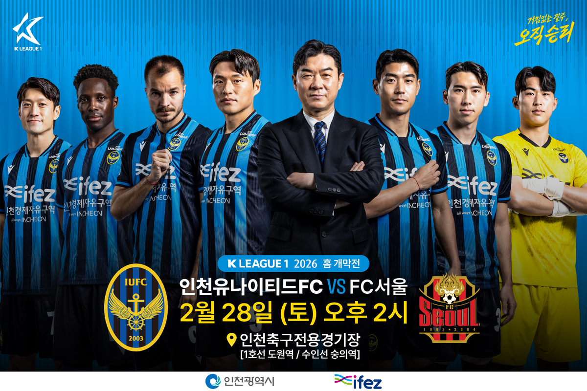 지난해 K리그2 우승을 차지하며 2026시즌 K리그1 무대로 복귀한 인천유나이티드가 오는 28일 오후 2시 인천축구전용경기장에서 열리는 ‘하나은행 K리그1 2026’ 1라운드에서 FC서울을 상대로 홈 개막전을 치른다.