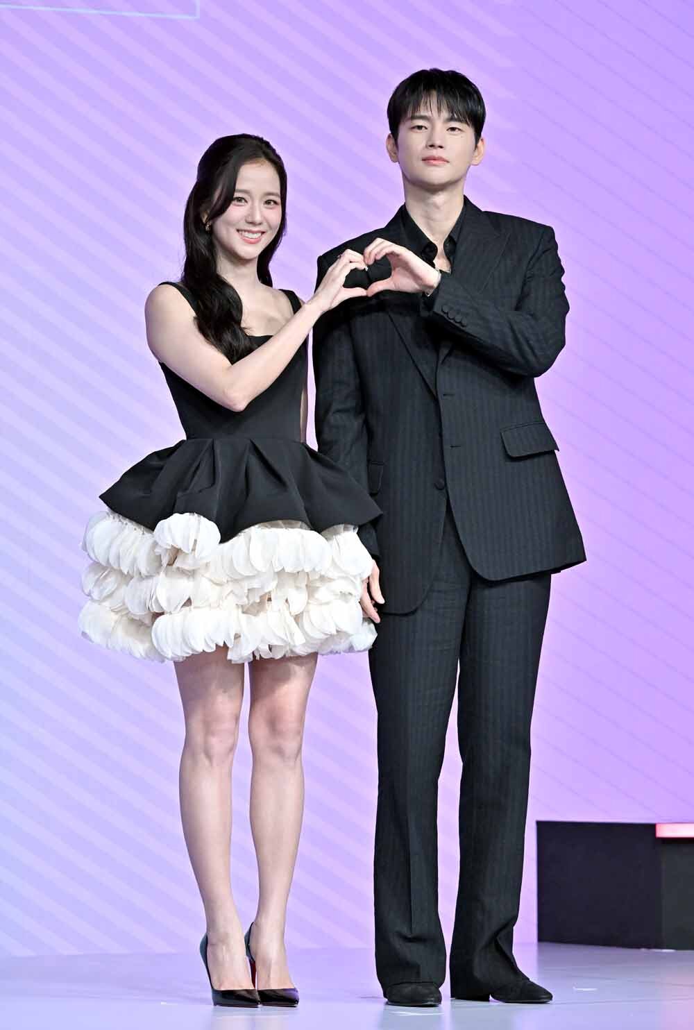 배우 지수(왼쪽)과 서인국이 26일 서울 종로구 JW메리어트 동대문 스퀘어에서 열린 넷플릭스 '월간남친(감독 김정식)' 언팩 기자 쇼케이스에서 포즈를 취하고 있다. 넷플릭스 '월간남친'은 현실 생활에 지친 웹툰 PD ‘미래’가 가상 연애 시뮬레이션을 통해 연애를 구독하고 체험해보는 로망 실현 로맨틱 코미디로 지수, 서인국 등이 출연한다. 사진=김두홍 기자 kimdh@sportsworldi.com