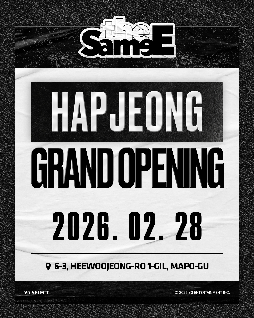 서울 합정동 YG Entertainment 사옥 정문 앞에 위치한 ‘더 세임(the SameE)’ 합정점이 28일 리뉴얼을 마치고 그랜드 오픈한다. 이번 리뉴얼은 단순 MD 판매 공간을 넘어, 아티스트의 음악과 콘텐츠를 보다 입체적으로 경험할 수 있는 체험형 프로젝트 공간으로의 확장을 핵심으로 한다.