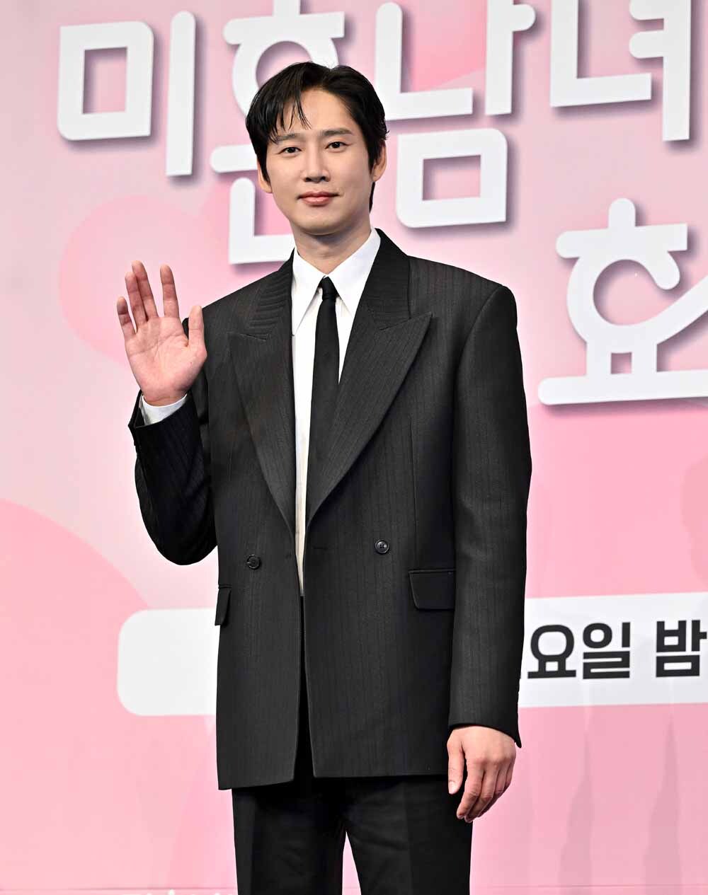 배우 박성훈이 26일 서울 구로구 더 링크호텔 서울에서 열린 jtbc 토일드라마 '미혼남녀의 효율적 만남(감독 이재훈)' 제작발표회에서 포즈를 취하고 있다.