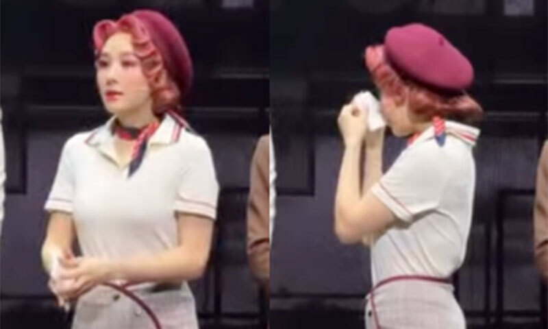 그룹 핑클 출신 뮤지컬 배우 옥주현이 마지막 무대를 마치며 눈물을 보였다.