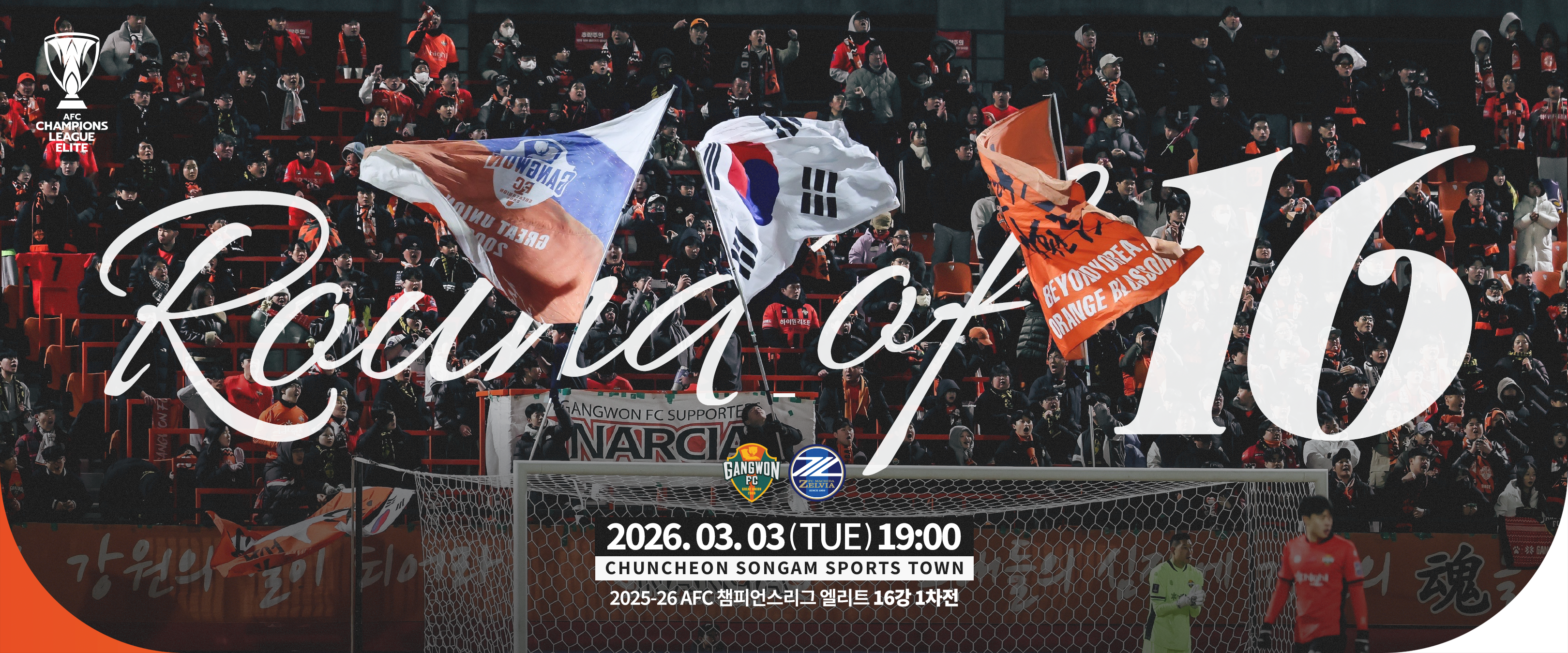 강원FC는 오는 3일 오후 7시 춘천 송암스포츠타운 주경기장에서 2025~2026 아시아챔피언스리그 엘리트(ACLE) 16강 1차전 마치다 젤비아와 홈경기를 치른다. 역사적인 16강전의 첫 경기가 강원도에서 열린다. ACLE 16강 토너먼트는 두 경기 합산 스코어로 승부가 갈린다. 강원FC는 홈경기에서 분위기를 주도해 원정 부담을 줄이겠다는 계획이다.