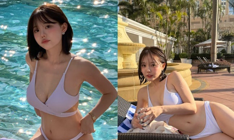 그는 화이트 비키니를 입고 물속에 몸을 담그거나 선베드에 기대 포즈를 취하며 휴가 분위기를 만끽했다.