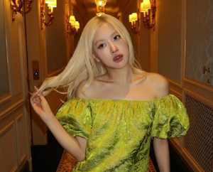 공개된 사진에는 한 명품 브랜드 쇼에 참석한 로제의 모습이 담겼다. 라임 그린 컬러의 오프숄더 미니 드레스를 입은 로제는 가녀린 어깨와 깊은 쇄골 라인을 드러내며 시선을 사로잡았다.