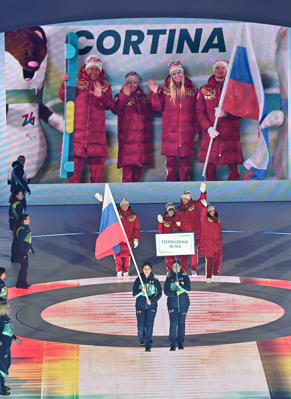 6일(현지시간) 이탈리아 아레나 디 베로나에서 열린 2026 밀라노 코르티나 동계패럴림픽 개회식에서 러시아 선수단이 입장하고 있다. 베로나=김두홍 기자 kimdh@sportsworldi.com 2026.03.07.