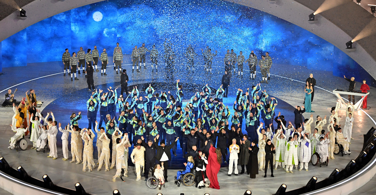 6일(현지시간) 이탈리아 아레나 디 베로나에서 열린 2026 밀라노 코르티나 동계패럴림픽 개회식에서 마지막 축하공연을 하며 인사를 하고 있다. 베로나=김두홍 기자 kimdh@sportsworldi.com 2026.03.07.