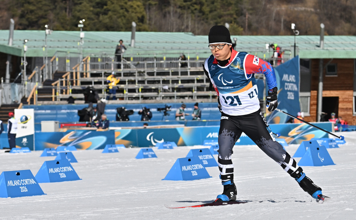 바이애슬론 김민영이 7일(현지시간) 이탈리아 테세로 크로스컨트리 스키 스타디움에서 열린 2026 밀라노 코르티나 동계패럴림픽 바이애슬론 7.5km 경기에서 역주하고 있다. 테세로=김두홍 기자 kimdh@sportsworldi.com 2026.03.08.