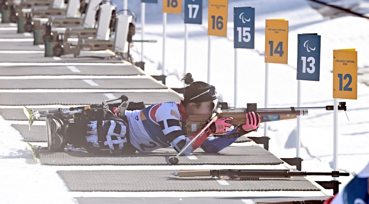 바이애슬론 한승희가 7일(현지시간) 이탈리아 테세로 크로스컨트리 스키 스타디움에서 열린 2026 밀라노 코르티나 동계패럴림픽 바이애슬론 여자 스프린트 좌식 7.5㎞ 경기에서 사격을 하고 있다. 테세로=김두홍 기자 kimdh@sportsworldi.com 2026.03.08.