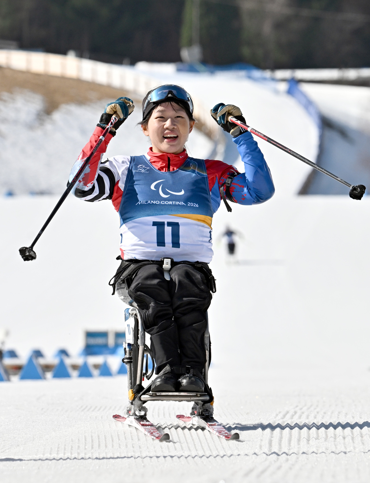 바이애슬론 김윤지가 8일(현지시간) 이탈리아 테세로 크로스컨트리 스키 스타디움에서 열린 2026 밀라노 코르티나 동계패럴림픽 바이애슬론 여자 스프린트 좌식 12.5km 경기에서 금메달을 차지한 뒤 밝게 웃고 있다. 테세로=김두홍 기자 kimdh@sportsworldi.com 2026.03.08.