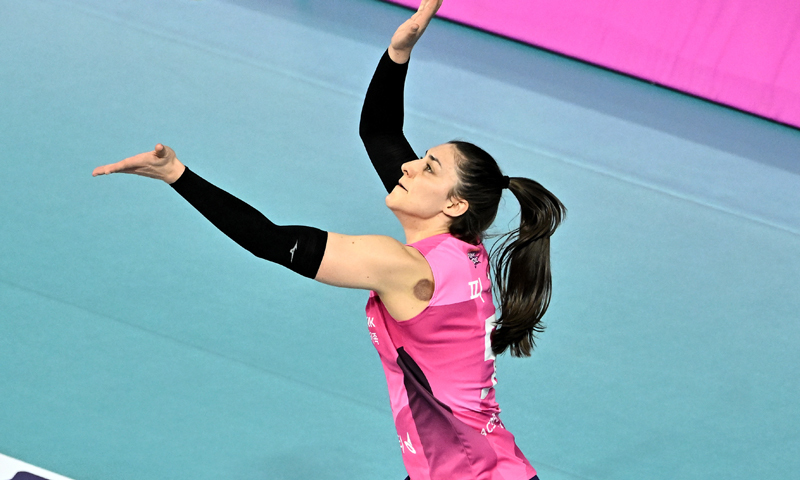 여자프로배구 흥국생명이 외인 미들블로커 피치를 앞세워 봄배구를 확정했다.