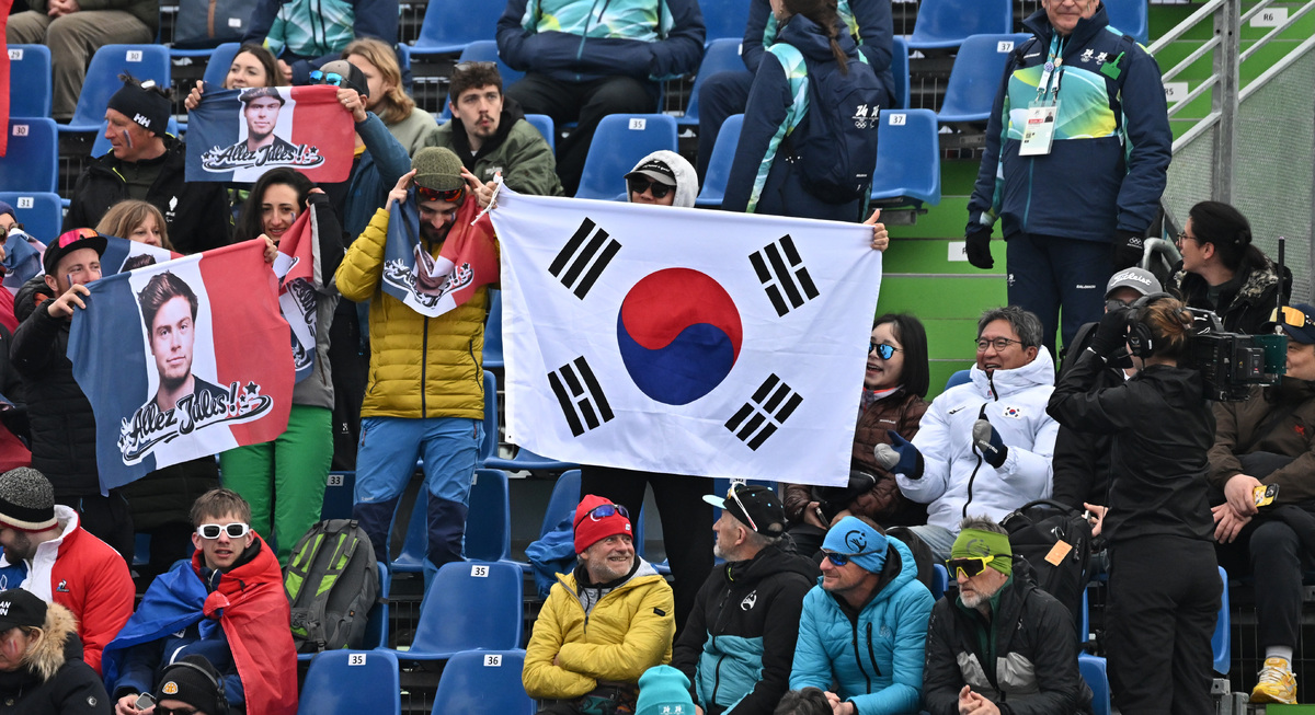 10일(현지시간) 이탈리아 코르티나담페초 토파네 알파인 스키 센터에서 열린 2026 밀라노 코르티나 패럴림픽 알파인스키 알파인 복합경기에서 관중들 태극기를 들고 응원을 하고 있다. 코르티나(이탈리아)=김두홍 기자 kimdh@sportsworldi.com 2026.03.10.