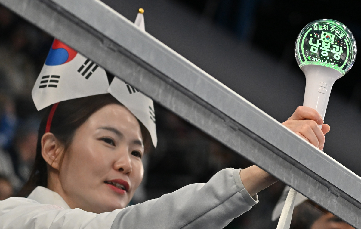 휠체어컬링 백혜진이 12일(현지시간) 이탈리아 코르티나담페초 컬링 올림픽 스타디움에서 열린 2026 밀라노 코르티나 패럴림픽 휠체어컬링 혼성 4인조 캐나다와의 예선전에서 남편 남봉광을 응원하고 있다. 2026.03.12. 코르티나=사진공동취재단