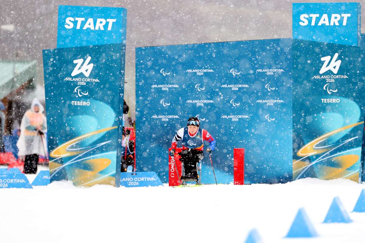 김윤지가 15일(현지시간) 이탈리아 테세로 크로스컨트리 스키 스타디움에서 열린 2026 밀라노·코르티나담페초 동계 패럴림픽 크로스컨트리 스키 여자 20㎞ 인터벌 스타트 좌식 경기에서 출발을 하고 있다. 사진=대한장애인체육회 제공