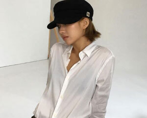 푹 눌러 쓴 블랙 뉴스보이 캡도 시크하고 힙한 매력을 극대화한다. 무릎 기장의 블랙 가죽 롱부츠는 전체적으로 무게감을 잡아 준다. 동시에 다리를 더욱 길고 날씬하게 보이는 효과도 발휘한다. 길고 화려한 네일아트도 디테일을 놓치지 않고 트렌디한 감각을 살렸다.