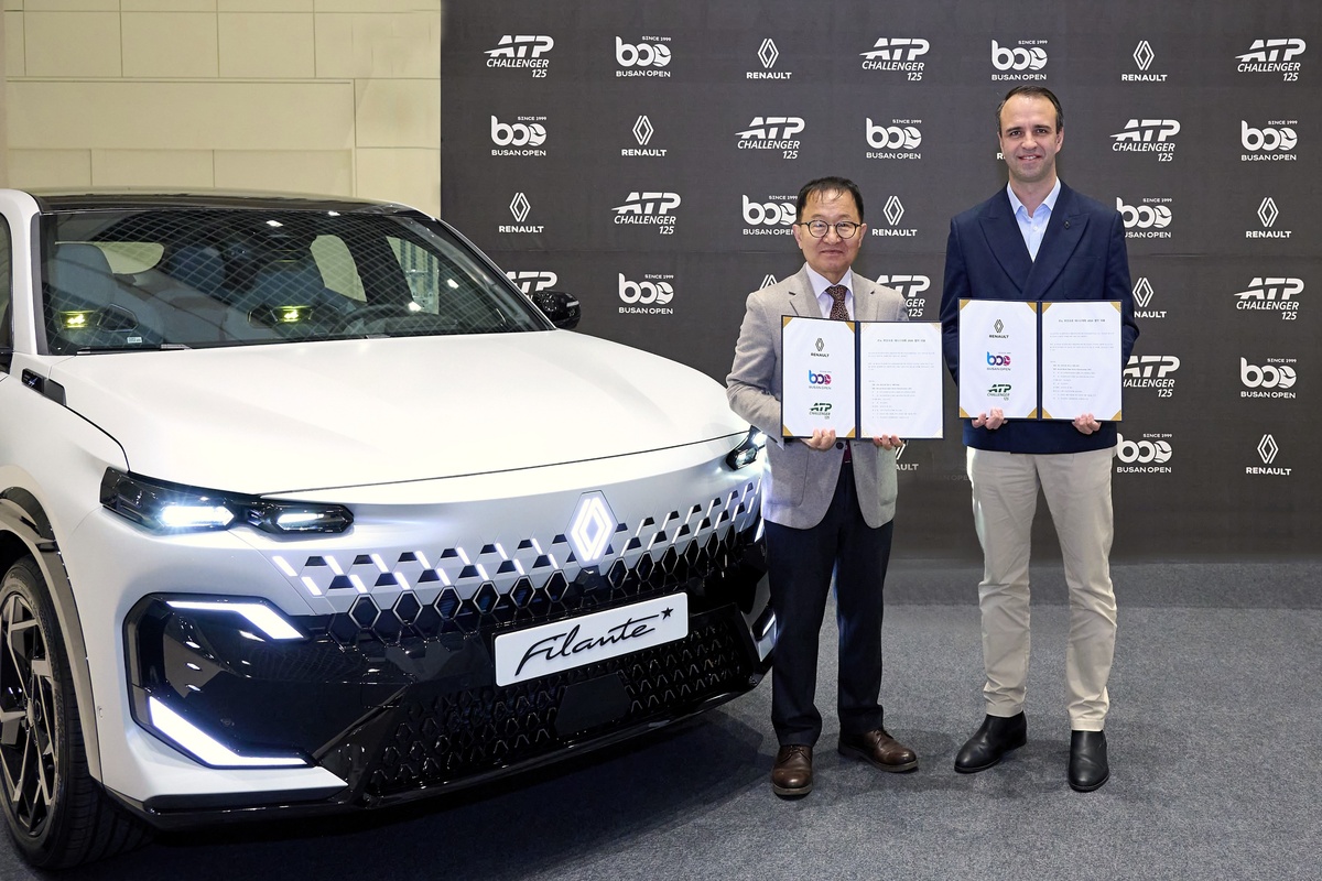 르노코리아(대표이사 니콜라 파리)가 17일 부산공장에서 르노코리아 니콜라 파리 대표이사, 부산광역시테니스협회 신주식 회장 등이 참석한 가운데 ‘르노 부산오픈 2026’ 테니스대회의 타이틀 스폰서 조인식을 진행했다.