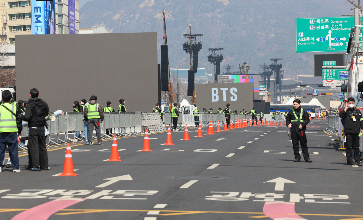 BTS컴백 공연으로 통제된 광화문광장 기사입력 2026-03-21 15:29:52 기사수정 2026-03-21 15:30:11 글씨 크기 선택 가장 작은 크기 글자 한 단계 작은 크기 글자 기본 크기 글자 한 단계 큰 크기 글자 가장 큰 크기 글자 방탄소년단(BTS) 컴백 공연 당일인 21일 서울 종로구 광화문광장 일대가 통제되고 있다. 사진=뉴시스 김두홍 기자 kimdh@sportsworldi.com [ⓒ 세계비즈앤스포츠월드 & sportsworldi.com, 무단전재 및 재배포 금지] 메뉴보기 페이스북 공유 트위터 공유 url 공유 더보기