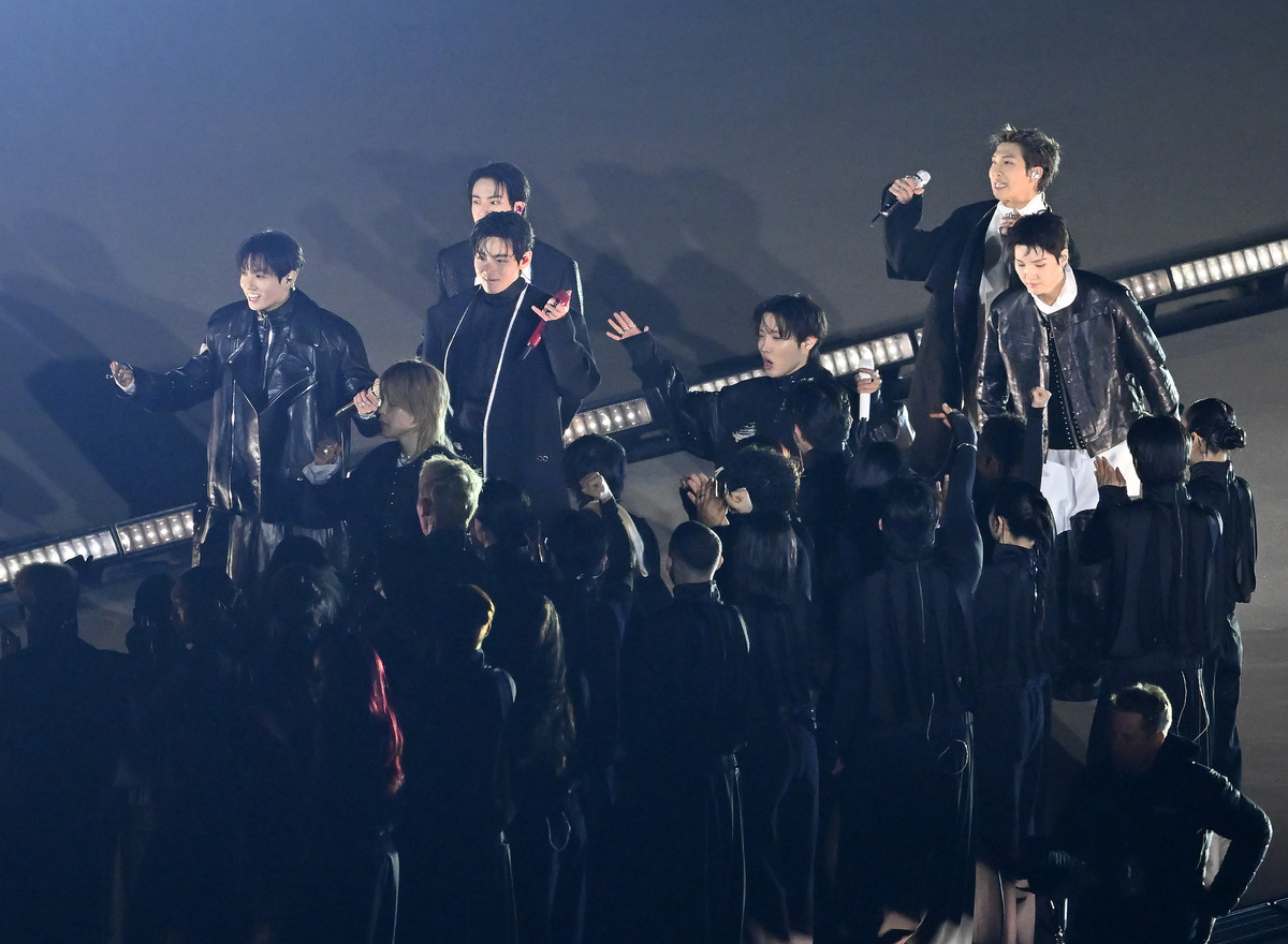 방탄소년단(BTS)이 21일 서울 광화문광장에서 컴백 기념 공연인 'BTS 컴백 라이브: 아리랑'을 펼치고 있다.