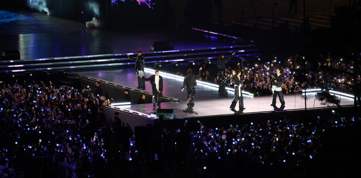 방탄소년단(BTS)이 21일 서울 광화문광장에서 컴백 기념 공연인 'BTS 컴백 라이브: 아리랑'을 펼치고 있다.