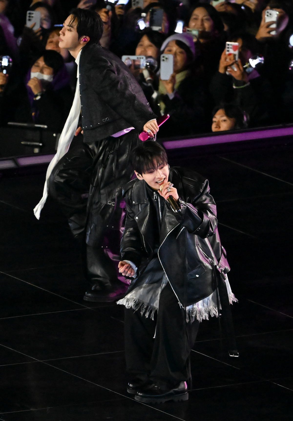 방탄소년단(BTS)이 21일 서울 광화문광장에서 컴백 기념 공연인 'BTS 컴백 라이브: 아리랑'을 펼치고 있다.