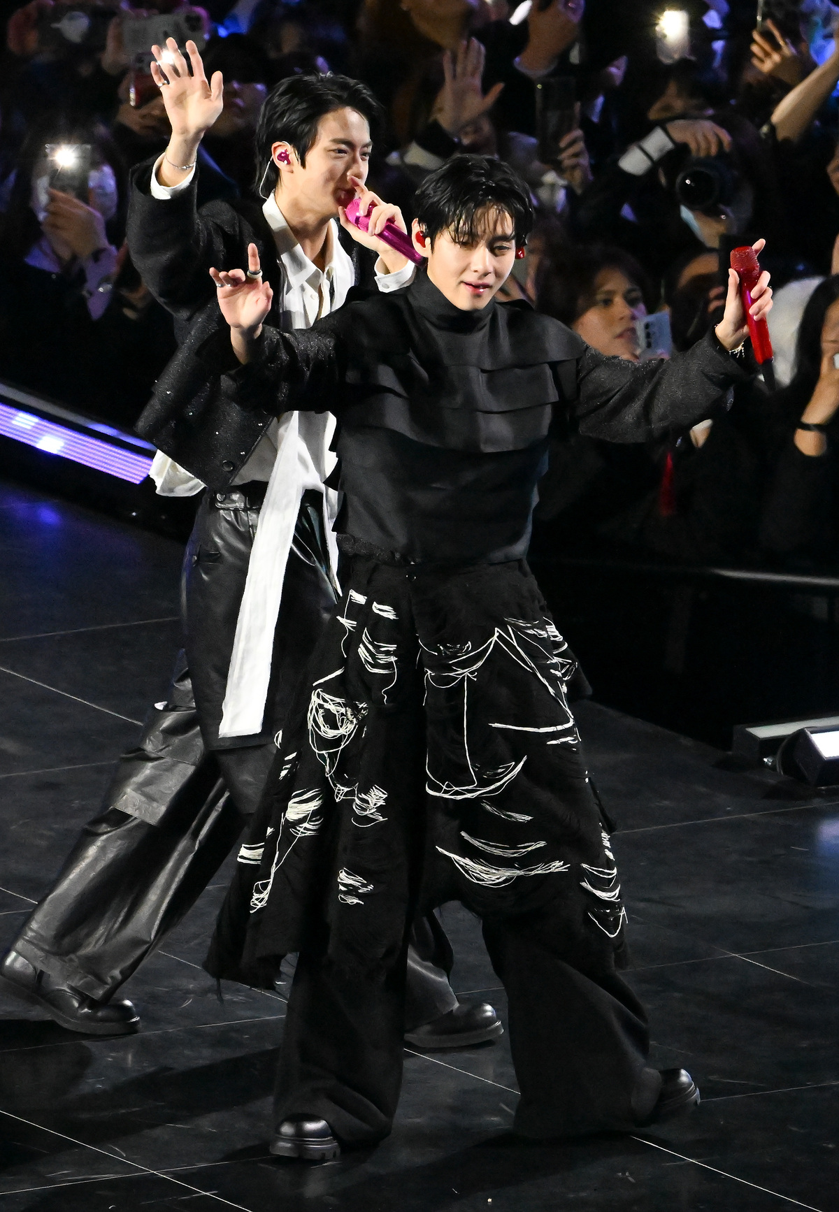 방탄소년단(BTS)이 21일 서울 광화문광장에서 컴백 기념 공연인 'BTS 컴백 라이브: 아리랑'을 펼치고 있다.