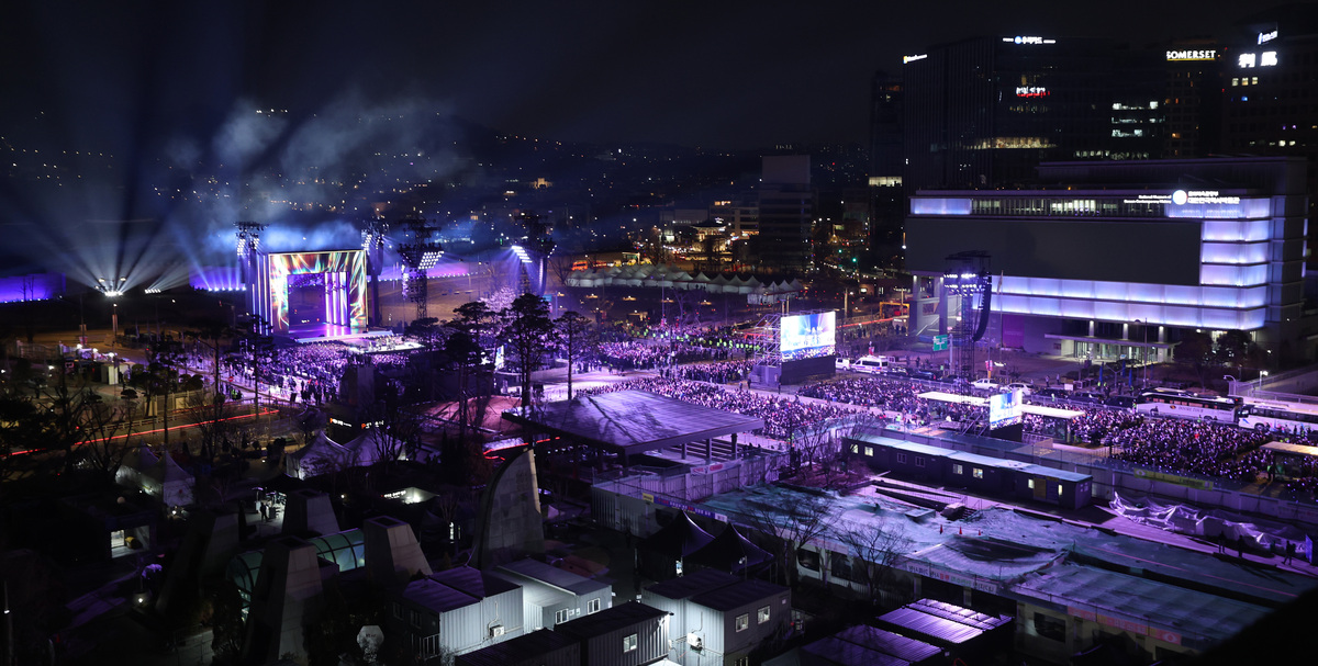 방탄소년단은 지난 21일 서울 종로구 광화문광장에서 다섯 번째 정규앨범 ‘아리랑’ 발매 기념 컴백 공연인 ‘BTS 컴백 라이브: 아리랑’을 열었다. 현장에는 주최 측 추산 약 10만4000명, 경찰 비공식 추산 4만2000명 정도 모였다.