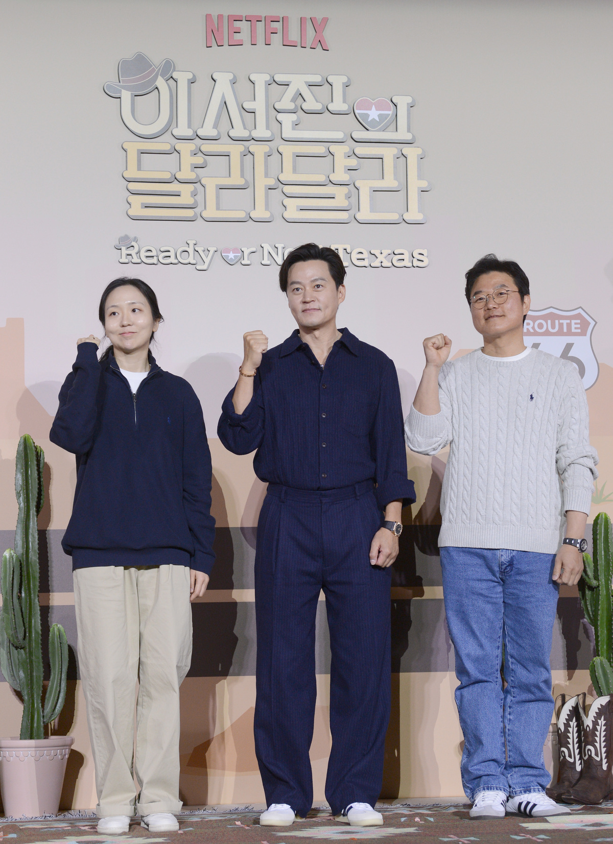 김예슬 PD, 배우 이서진, 나영석 PD(왼쪽부터)가 24일 서울 용산구 CGV 용산점에서 열린 넷플릭스 예능 '이서진의 달라 달라(감독 김예슬)' 제작발표회에서 포즈를 취하고 있다. 넷플릭스 예능 '이서진의 달라 달라(감독 김예슬)' 는 2020년 방송된 tvN 예능 ‘이서진의 뉴욕뉴욕’ 스핀오프 격인 프로그램으로 평소 미국 텍사스에 남다른 애정을 가진 것으로 알려진 배우 이서진이 나영석 PD에게 직접 텍사스를 소개해주는 형식으로 진행된다. 사진=김두홍 기자 kimdh@sportsworldi.com
