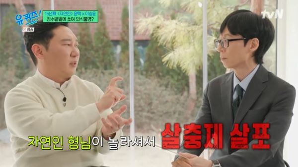 지난 25일 방영된 tvN 예능 프로그램 ‘유 퀴즈 온 더 블럭’에는 ‘나는 자연인이다’에 출연 중인 윤택과 이승윤이 게스트로 출연했다. 이날 이승윤은 촬영 중 장수말벌에 쏘였던 당시를 회상했다.