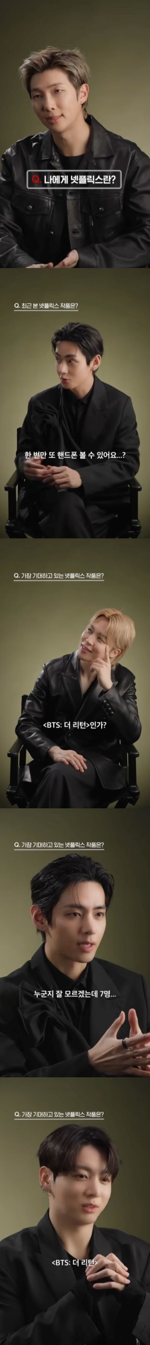 영상에 등장한 BTS 멤버들은 ‘나에게 넷플릭스란?’이라는 간단한 질문부터 다양한 인터뷰에 대답했다.