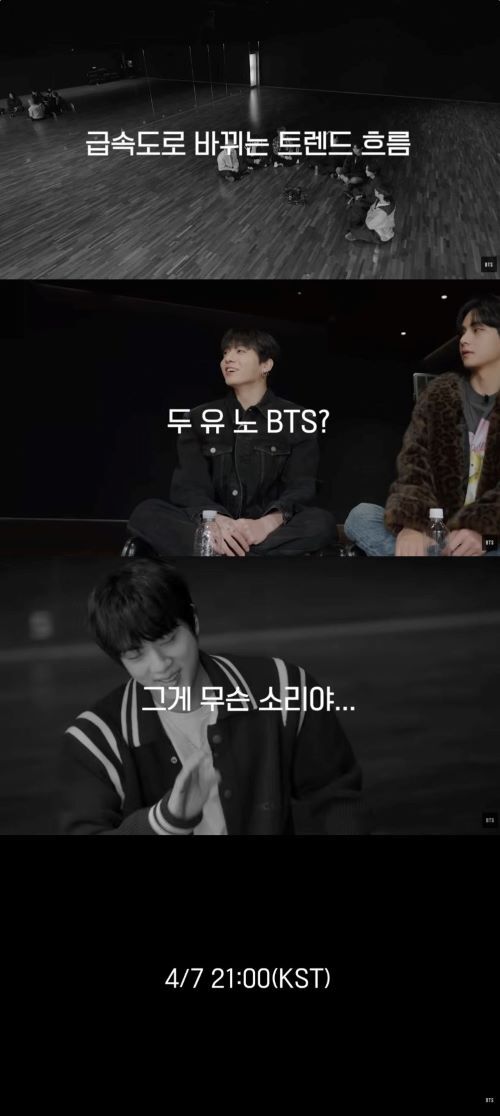 영상에서 BTS 멤버들은 유튜브와 예능의 트렌드가 빠르게 바뀌는 흐름을 염두에 두고 여러 가지 주제를 구상했다. 영상 마지막에 오는 4월 7일 21시가 나타나 달려라 방탄 2.0의 첫 방송 시기를 알렸다.
