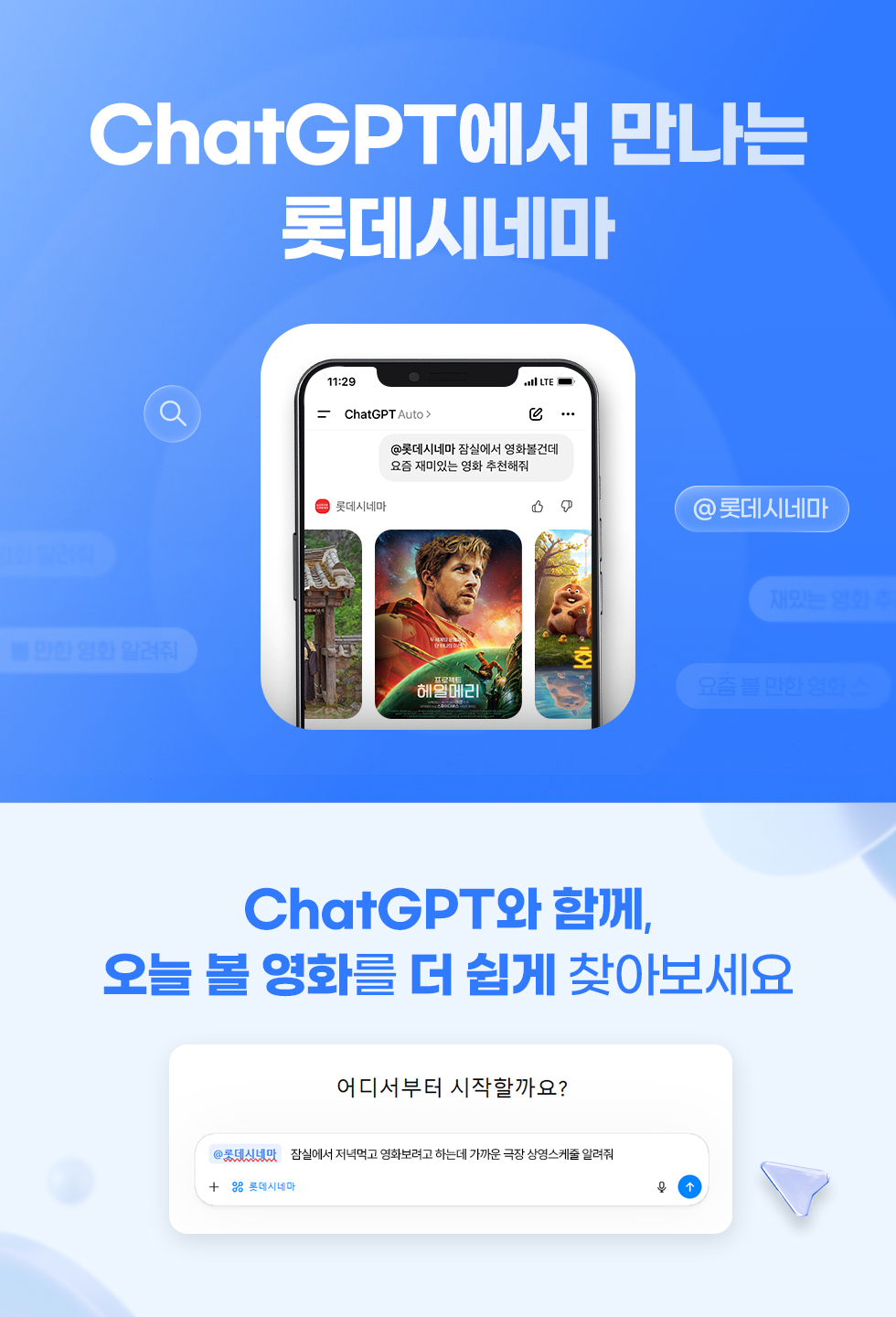 롯데시네마 관계자는 “이번 챗GPT 서비스는 고객들이 영화를 선택하고 영화관을 방문하기까지의 여정에서 발생하는 번거로움을 기술적으로 해결하기 위해 기획됐다”며 “앞으로도 최신 기술을 선제적으로 도입해 단순한 영화 상영을 넘어 스마트하고 차별화된 고객 경험 혁신을 지속해 나갈 것”이라고 밝혔다.