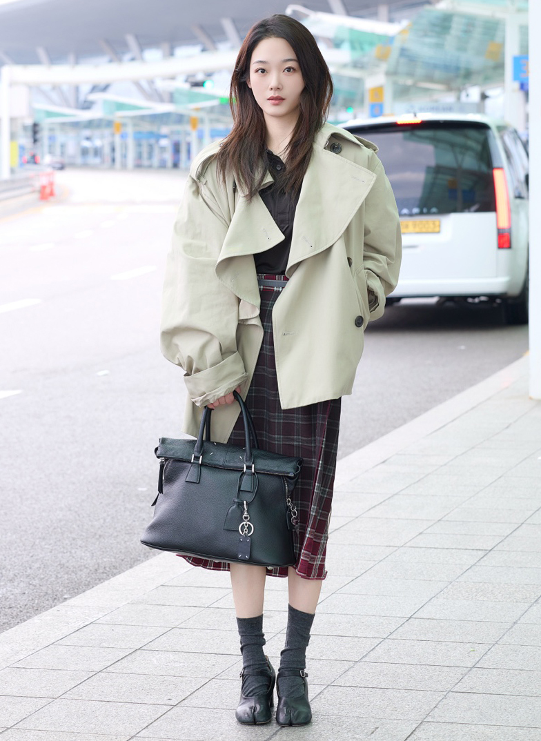 배우 이유미가 ‘메종 마르지엘라(Maison Margiela) 2026 가을 겨울 쇼’ 참석을 위해 인천공항을 통해 중국 상하이로 출국하며 개성이 돋보이는 공항패션을 선보였다.