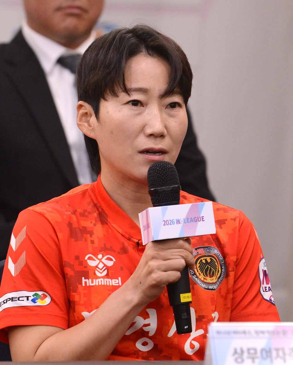 여자축구 상무여자축구단 주장 권하늘이 1일 서울 송파구 올림픽파크텔에서 열린 '2026 WK리그 미디어데이'에서 질문에 답하고 있다. 사진=김두홍 기자 kimdh@sportsworldi.com