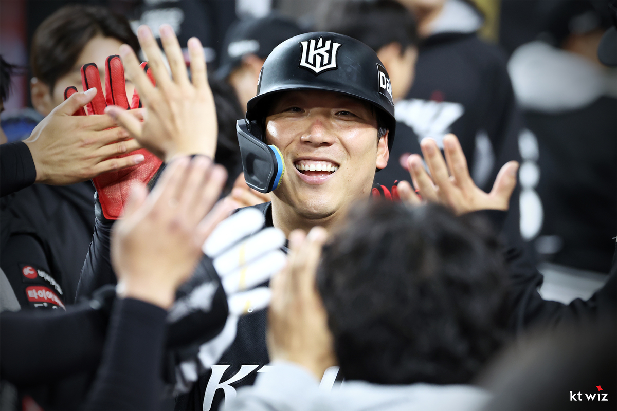 물론 이날 경기 흐름은 결코 순탄하지 않았다. KT는 1회 초 안현민의 선제 솔로포로 기분 좋은 출발을 알린 바 있다. 그러나 지난해 한국시리즈 준우승을 일군 한화의 저력은 만만치 않았다. 장군멍군 흐름 속 스코어 열세를 1회 말(1-2), 5회 말(2-3) 두 번이나 내줬을 정도다.