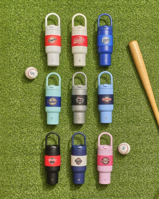 내부뿐만 아니라 외부 구조도 사용 편의성을 고려해 개선됐다. 중앙에 스트로우 마개를 적용해 뚜껑을 열지 않고도 빨대를 꽂아 사용할 수 있으며, 외관에는 자수 질감을 살린 구단별 로고를 적용하고 수분 흡수가 적어 관리가 용이한 PU 소재 슬리브를 더해 고급스러운 디자인을 구현했다.
